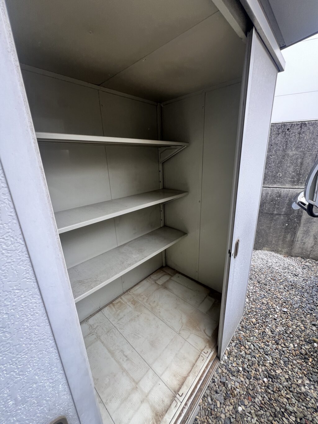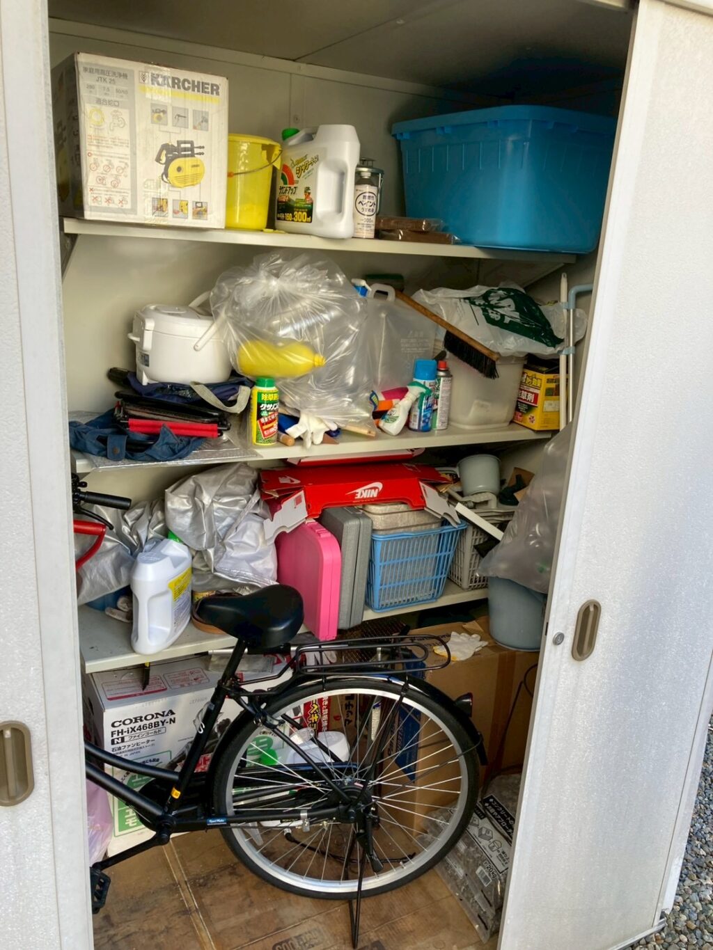 長年にわたり保管されてきた不用品が棚ぎっしりに収納。