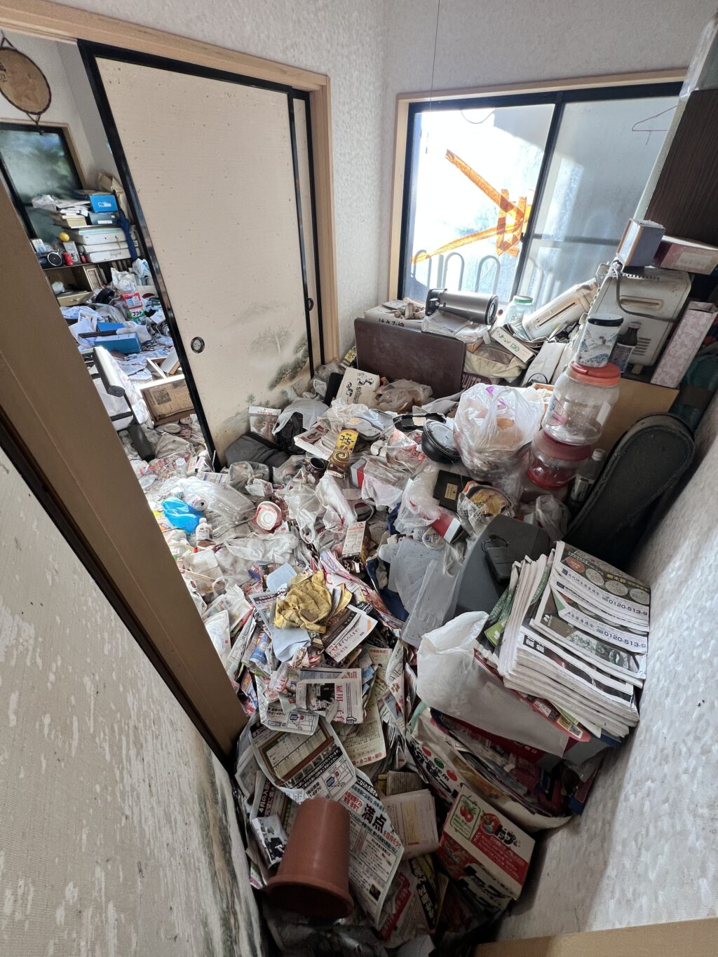 - 現状:ゴミ屋敷というほど不衛生ではないが、腰の高さまで物が積み上がり、生活スペースが圧迫されている状態