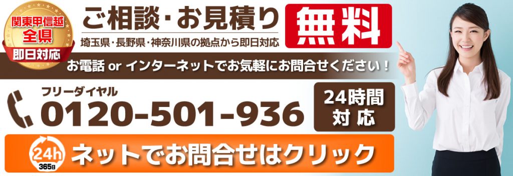 | 出張料 | 長野県全域 0円 土日夜間OK!! 長野支店から駆け付けます! | 土日・夜間料あり | 遠方はあり |